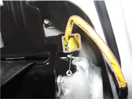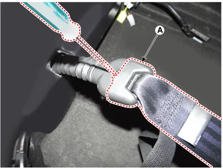 | 6. | Disconnect the seat belt pretensioner connector (A) and then remove the seat belt pretensioner.