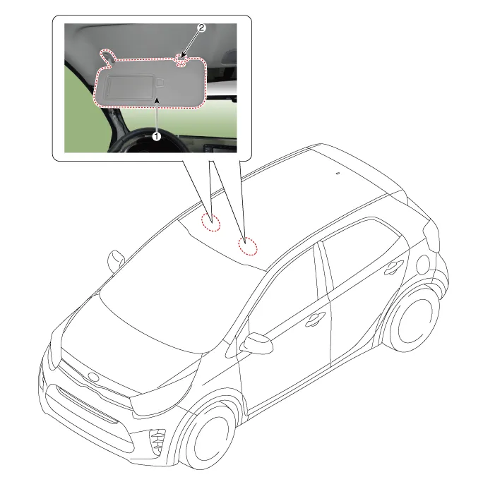 | 1. Sun visor | 2. Retainer |