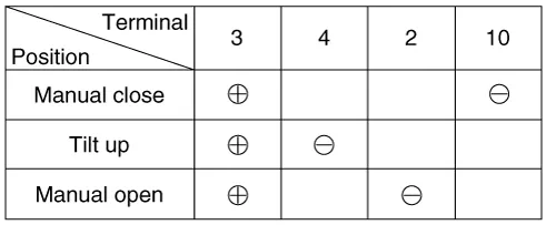 | 4. | Ground the terminals as below table, and check that the sunroof unit operates as below table.