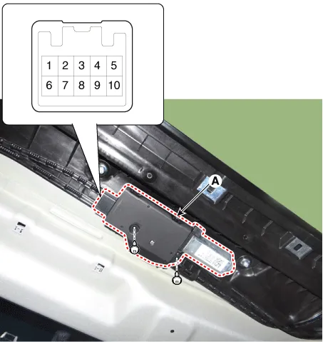 Sunroof SwitchComponents and components location Components Repair procedures Inspection 1. Disconnect the negative (-) battery terminal. 2. Remove the map lamp lens (A)...