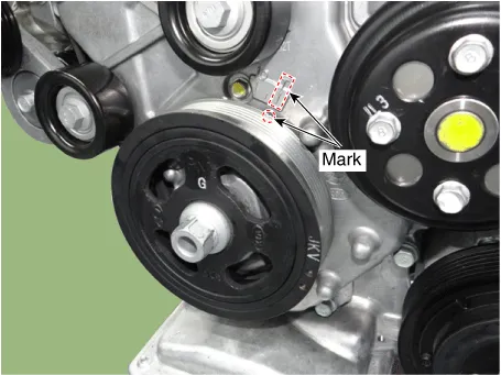 | 6. | After rotating the crankshaft 2 revolutions in regular direction (clockwise viewed from front), confirm the timing mark.