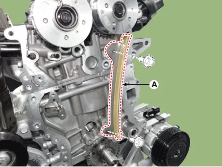 | 1. | Inspect the tensioner arm and chain guide for abnormal wear, cracks, or damage. Replace as necessary. |