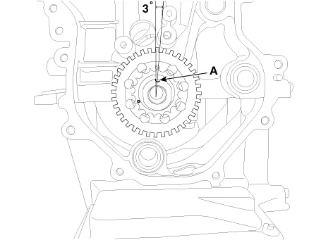 the dowel pin (A) of crankshaft about 3° with vertical center line. As a