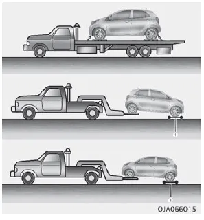 If emergency towing is necessary, we recommend having it done by an authorized Kia dealer or a commercial tow-truck service. Proper lifting and towing procedures are necessary to prevent damage to the vehicle. The use of wheel dollies (1) or flatbed is recommended.