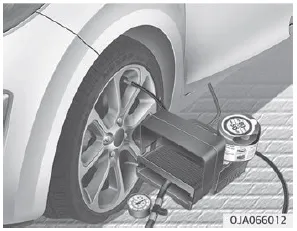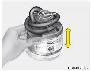 13. Immediately drive approximately 7~10 km (4~6 miles or, about 10 min) to evenly distribute the sealant in the tire. CAUTION Do not exceed a speed of 60 km/h (35 miles)...
