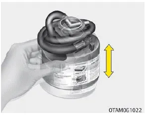 Securely install the sealant filling hose to the valve. If not, sealant may flow backward, possibly clogging the filling hose.