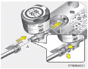 8. Connect between compressor and the vehicle power outlet using the cable and connectors.