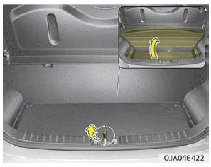 If you want to increase cargo space, 1. Grasp the handle on the top of the cover and lift it 2. Fold the rear part of the luggage board frontward 3.