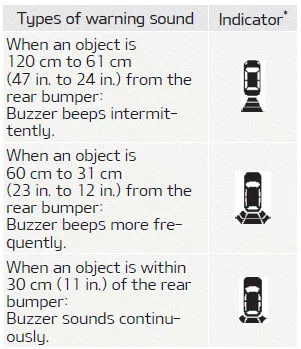 The rear parking assist system assists the driver during backward movement of the vehicle by chiming if any object is sensed within a distance of 120 cm (47 in.